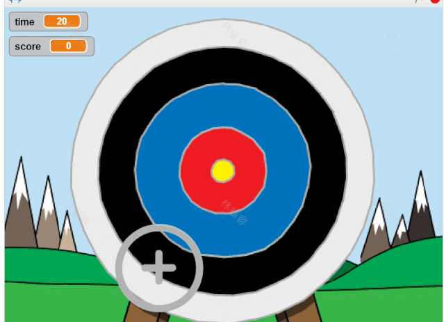 通过Scratch软件,设计一个射击小游戏程序,加深对条件语句的了解。在射击游戏中,越靠近靶心的射击分数越高。