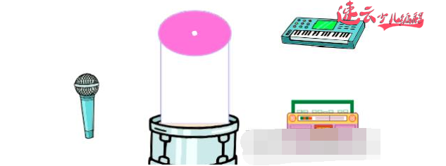 同样的,我们准备好道具——选好角色!我们让纸筒放在鼓上,分别用话筒、电子琴和收录机作为声源。自己制作一个小白点代表盐粉,放在气球碎片上。